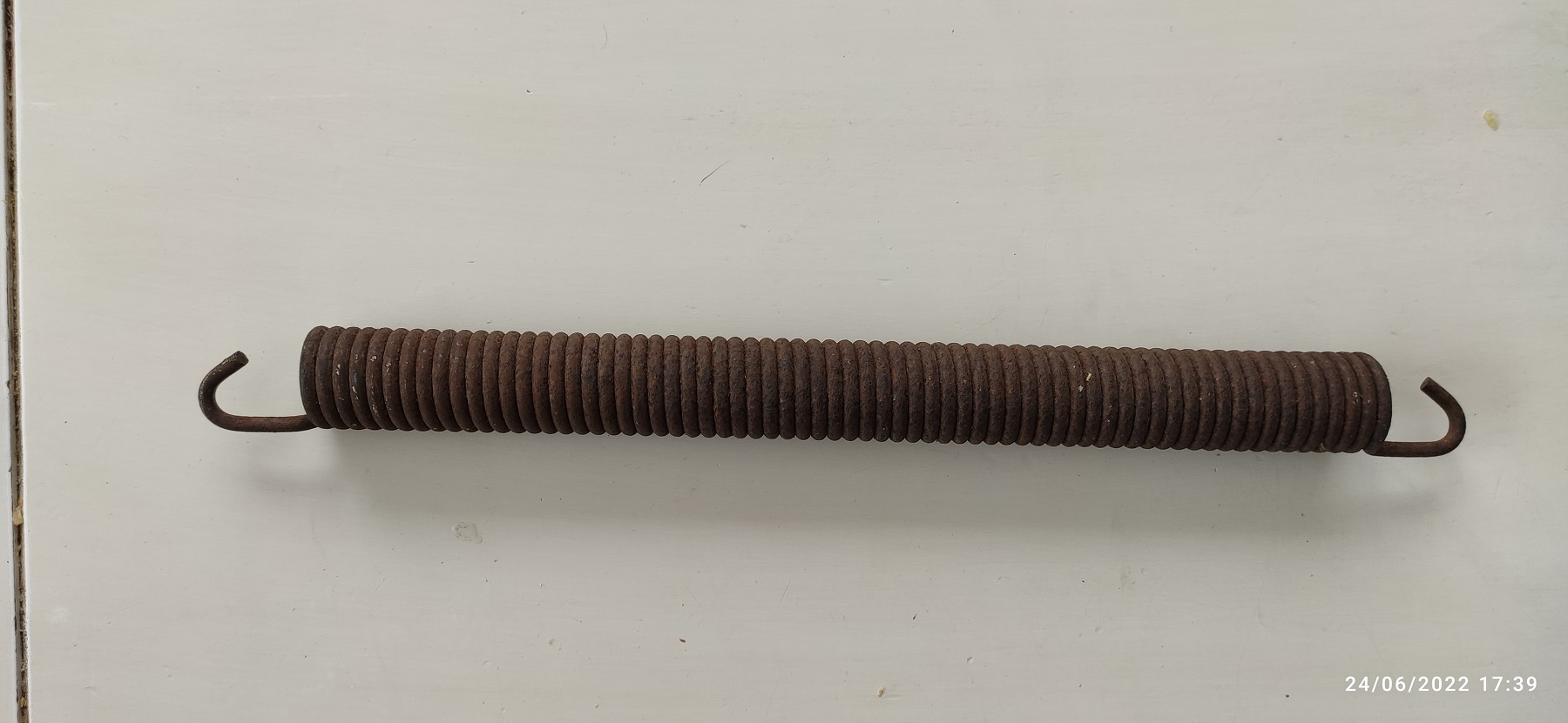 En démontant le plateau de coupe de ma tondeuse MTD AT 100 ref 13D1472F639 pour changer la courroie d'entrainement général reliée au système d'embrayage un ressort de 290 mm et de diamètre 25 mm est tombé au sol.