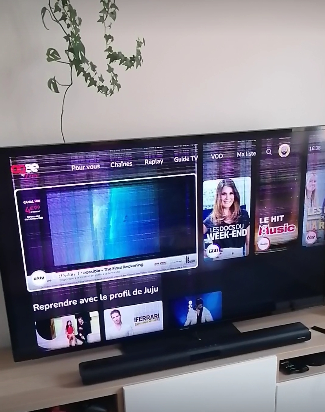 Bonjour, notre télé Edenwood saccade au bout de 20 min d'utilisation avec des lignes horizontales comme sur l'image.